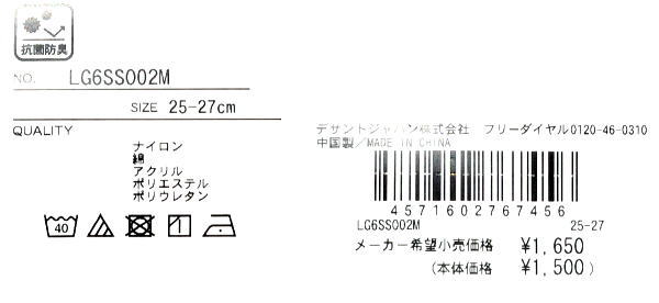 | 特 徴 | 25〜27cm ショート丈 抗菌防臭 足底パイル 足底サポート 家庭洗濯可 |