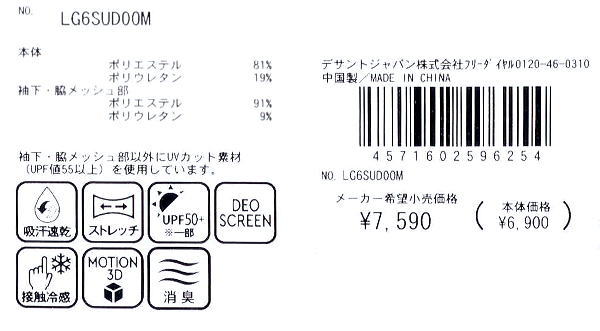 | 特 徴 | モーション3D 天竺 メッシュ素材(脇下/両脇切替部) デオスクリーン(消臭) 接触冷感 吸汗速乾 ストレッチ UVケア(UPF50+) 家庭洗濯可 |