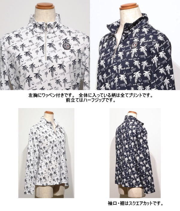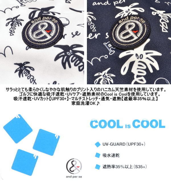 【春夏商品・春夏秋にオススメ】 アンパシー andperse レディース ゴルフウェア 長袖ポロシャツ 長袖シャツ AFS9105X9 (M/L/LL/3L) アンパスィのソルケアプリンテッド長袖シャツです。 大人の遊び心を感じるプリントが良い感じのアンパシーのハーフジップ長袖ポロシャツです。 細かいところも丁寧に作りこまれていますので、『あっ、良い感じ♪』と思っていただけましたら超オススメですよ♪ 生地はサラッととても柔らかくしなやかな肌触りのハニカム天竺素材を使用しています。 日傘に求められる基準の遮蔽率35%以上をクリアしたCOOL is COOLを使用しています。 吸汗速乾・UVカット・通気・遮蔽素材ですので、快適な着用感が持続いたしますよ♪ 肌触りの良い素材で、マルチストレッチいたしますので着心地も抜群です。 春・夏・秋がオススメ着用シーズンです。 家庭洗濯できます。 ![]() ![]() ![]() ![]() |