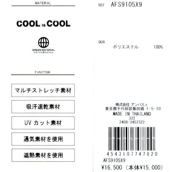 アンパスィ 長袖ポロシャツ レディース AFS9105X9 吸汗速乾 遮熱 通気 UVカット アンパシー アンパシ ハーフジップ長袖シャツ 長袖シャツ |