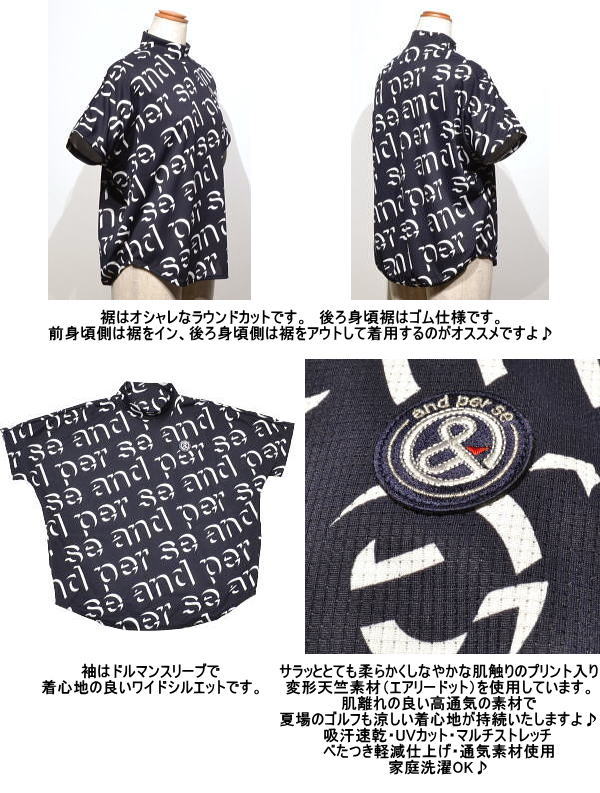 ![]() 【春夏商品】 アンパシー andperse レディース ゴルフウェア 半袖ポロシャツ 半袖シャツ AFS9525X7 (M/L/LL) アンパスィのスイングドライエアリードットFIBOシャツです。 明るくポップな印象のロゴプリントが良い感じで、大人の遊び心を感じるアンパシのボタンダウン半袖ポロシャツです。 細かいところも丁寧に作りこまれていますので、『あっ、良い感じ♪』と思っていただけましたら超オススメですよ♪ ワンランク上の動きやすさと速乾スピードが特徴の スイングドライ(SWING DRY) を採用しています。 生地はサラッととても柔らかくしなやかな肌触りのプリント入り変形天竺素材(エアリードット)を使用しています。 肌離れの良い高通気の素材で夏場のゴルフも涼しい着心地が持続いたしますよ♪ 吸汗速乾・UVカット・高通気・べたつき軽減仕上げ素材ですので、快適な着用感が持続いたしますよ♪ 肌触りの良い素材で、ストレッチ(マルチストレッチ)いたしますので着心地も抜群です。 家庭洗濯できます。 ![]() ![]() ![]() ![]() ![]() ![]() |