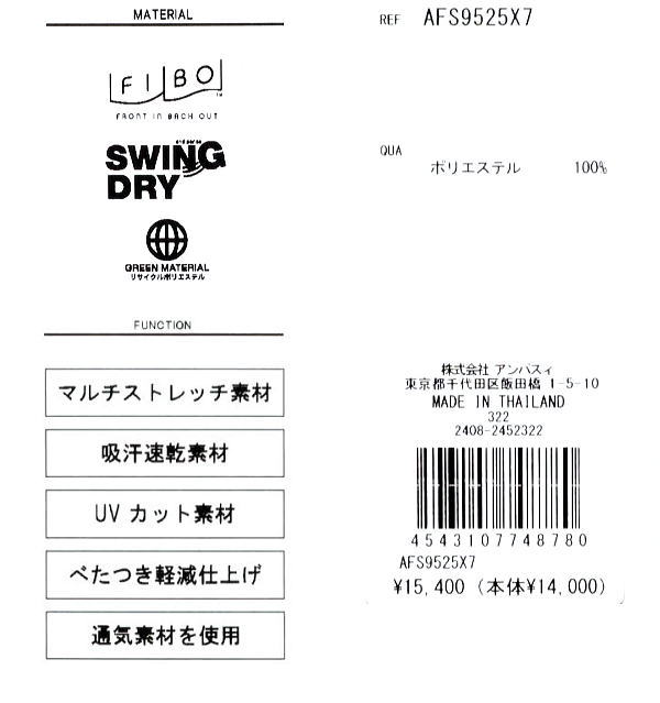 | 特 徴 | 変形天竺(エアリードット) SWING DRY(ワンランク上の動きやすさと速乾スピード) 吸汗速乾 UVケア マルチストレッチ べたつき軽減仕上げ 通気素材を使用 家庭洗濯可 |