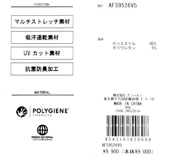 | 特 徴 | 天竺 マルチストレッチ 吸汗速乾 UVケア 抗菌防臭 家庭洗濯可 |