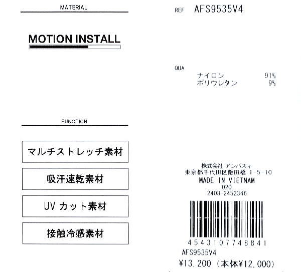 | 特 徴 | モーションインストール 変形天竺 マルチストレッチ 吸汗速乾 UVケア 接触冷感 家庭洗濯可 |