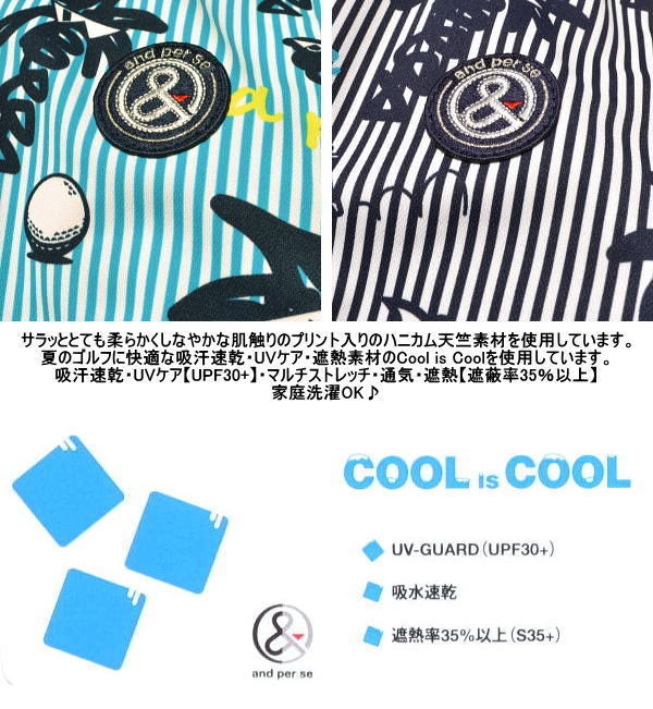 【春夏商品】 アンパシー andperse レディース ゴルフウェア 半袖ポロシャツ 半袖シャツ アロハシャツ AFS9685X4 (M/L/LL) アンパスィのソルケアプリンテッド半袖ポロシャツです。 夏らしいプリントが良い感じで、大人の遊び心を感じるアンパシィの半袖ポロシャツです。 細かいところも丁寧に作りこまれていますので、『あっ、良い感じ♪』と思っていただけましたら超オススメですよ♪ 生地はサラッととても柔らかくしなやかな肌触りのハニカム天竺素材を使用しています。 日傘に求められる基準の遮蔽率35%以上をクリアしたCOOL is COOLを使用しています。 吸汗速乾・UVカット・通気・遮蔽素材ですので、快適な着用感が持続いたしますよ♪ 肌触りの良い素材で、マルチストレッチいたしますので着心地も抜群です。 家庭洗濯できます。 ![]() ![]() ![]() ![]() |