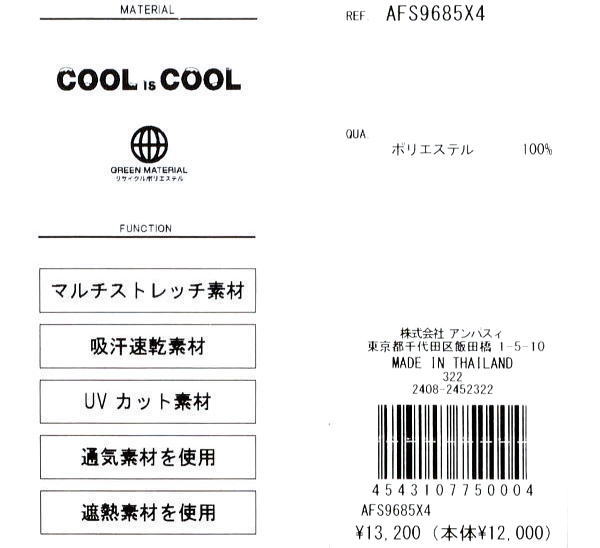 | 特 徴 | ハニカム天竺 吸汗速乾 UVケア マルチストレッチ 通気 遮蔽 家庭洗濯可 |