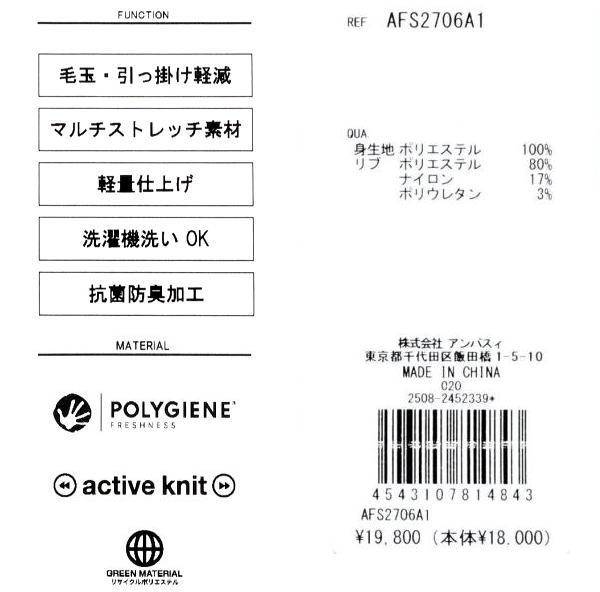 | 特 徴 | アクティブニット 12G天竺 毛玉・引っ掛け軽減 マルチストレッチ 軽量仕上げ 抗菌防臭 洗濯機洗い可 |