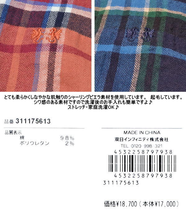特 徴 | シャーリングビエラチェック起毛 ストレッチ 家庭洗濯可 |