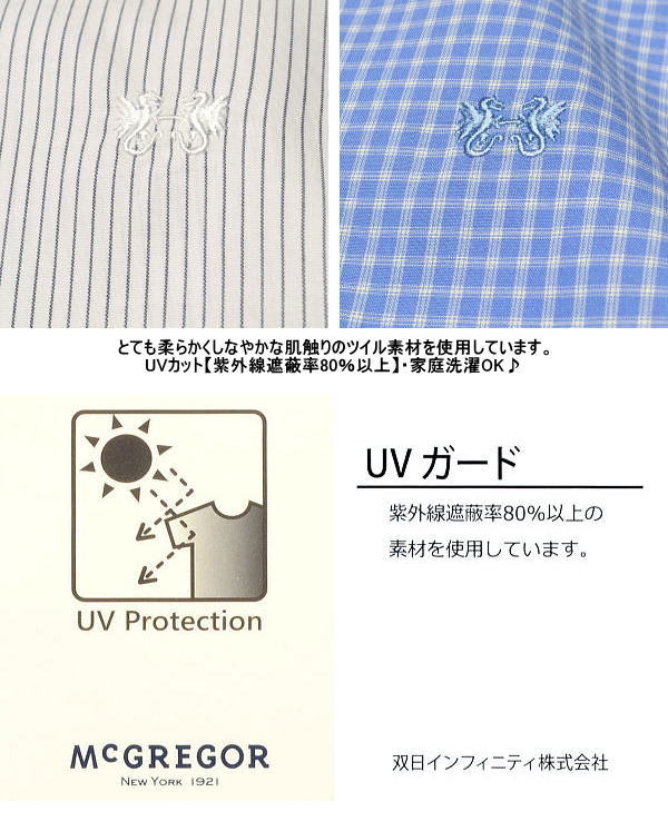 | 特 徴 | ツイル UVカット(紫外線遮蔽率80%以上) 家庭洗濯可 |