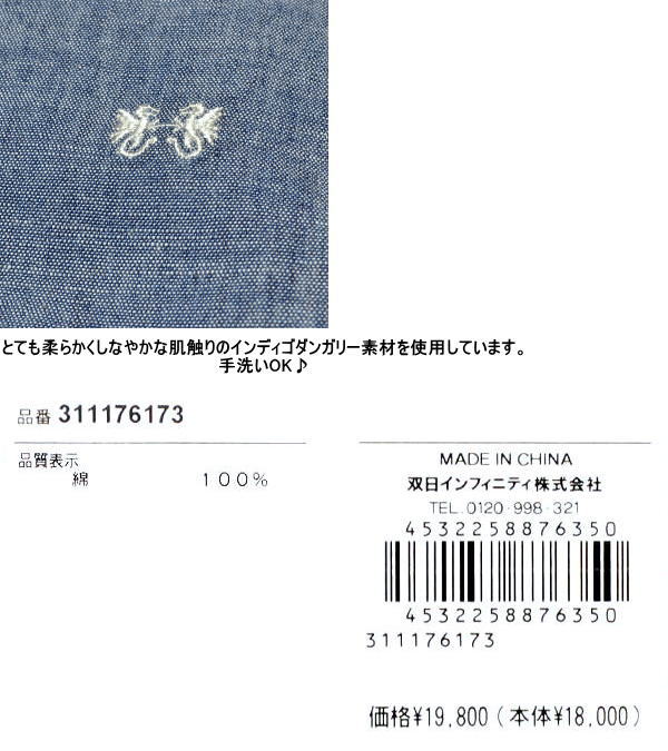 | 特 徴 | インディゴダンガリー素材 手洗い可 |