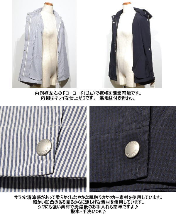 | 特 徴 | サッカー素材 撥水 裏地は付きません。 手洗い可 |