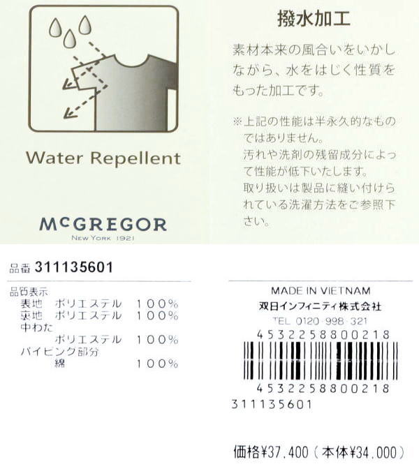 | 特 徴 | ポリエステルキルティング素材 中綿入り 撥水 ドライクリーニング |