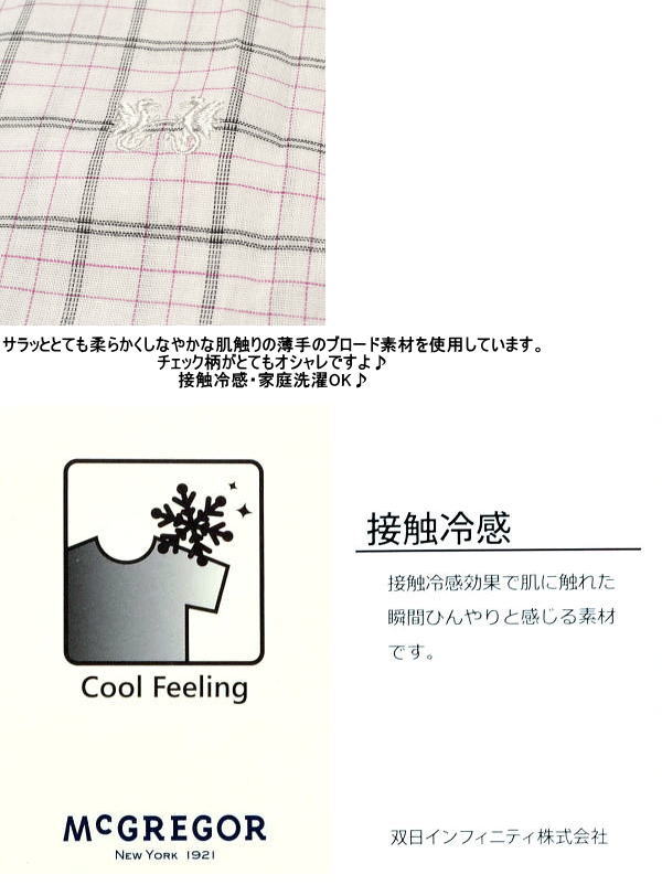 | 特 徴 | ブロードチェック 接触冷感 家庭洗濯可 |
