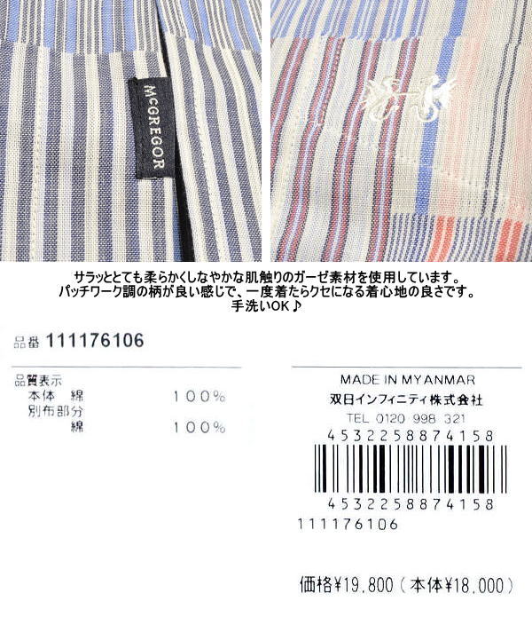 ![]() 【春夏商品・春/夏/秋にオススメ】 マクレガー McGREGOR メンズ 長袖シャツ ワイシャツ カジュアルシャツ 111176106 (M/L/LL) マックレガーのシャツ パッチワーク風 メンズです。 オシャレなパッチワーク調の柄の生地を使用したマグレガーのボタンダウン長袖シャツです。 オシャレな生地を使用していますので『おっ、良いじゃん♪』と思っていただけましたら超オススメですよ♪ 細かいところも丁寧に作りこまれています。 生地はサラッととても柔らかくしなやかな肌触りのガーゼ素材を使用しています。 肌触りの良い素材で、着心地も良く、一度着たらクセになる着心地の良さですよ♪ 春から夏がオススメ着用シーズンです。 秋口もオススメです。 手洗いできます。 ![]() ![]() |