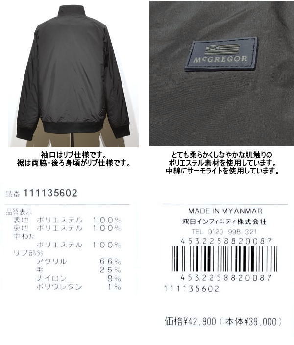 | マクレガー 中綿入りブルゾン メンズ 111135602 サーモライト 中綿入り ブルゾン ジャケット ウインドブレーカー McGREGOR |