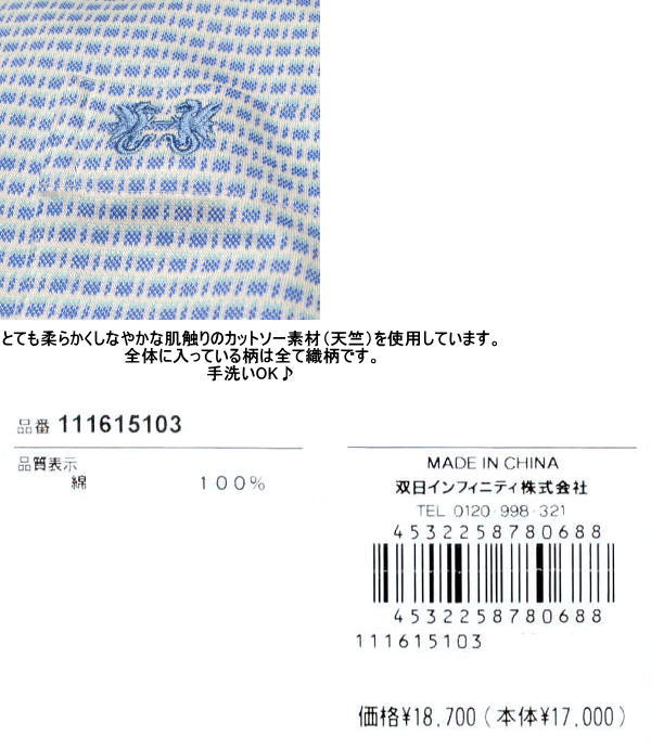 | 特 徴 | 天竺ジャカード 手洗い可 |