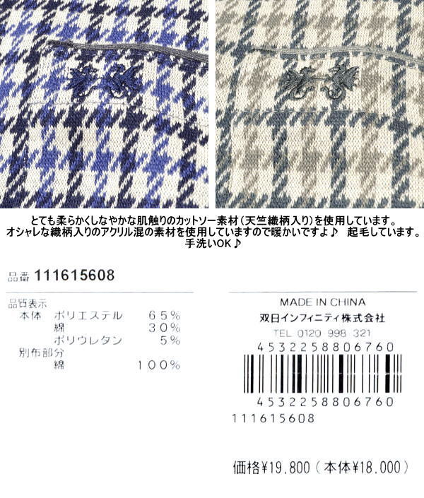 特 徴 | 天竺織柄入り 起毛 ストレッチ 手洗い可 |