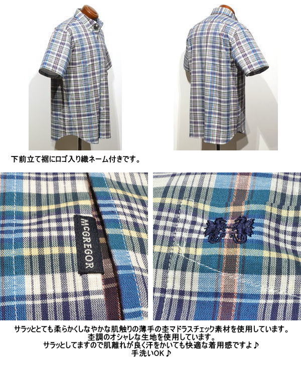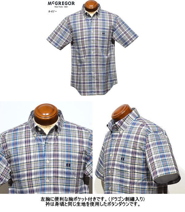 | マクレガー ボタンダウン半袖シャツ メンズ 111166106 杢マドラスチェック 半袖シャツ McGREGOR |