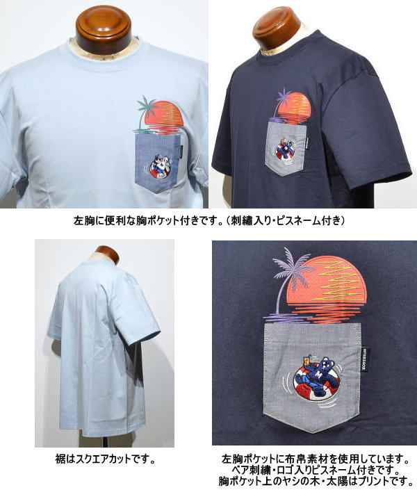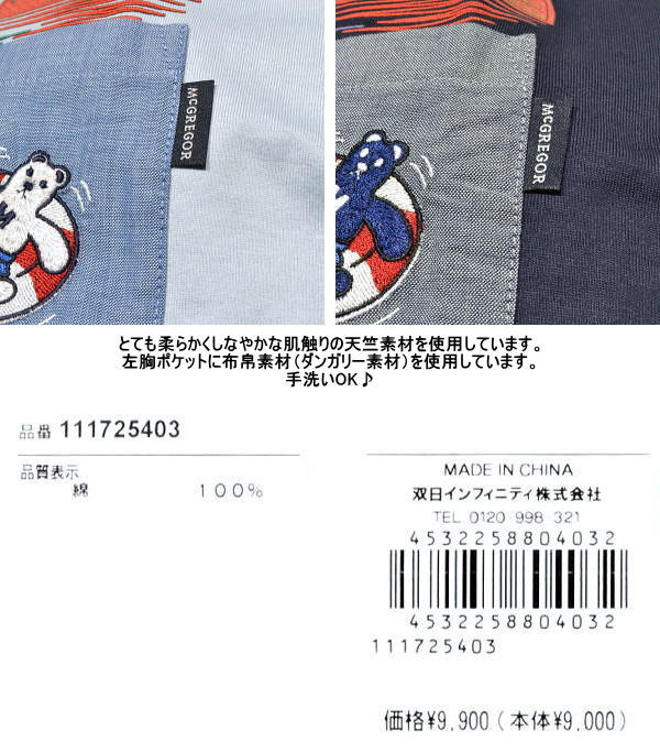 | 特 徴 | 天竺 胸ポケットに布帛素材使用(ダンガリー素材) 手洗い可 |