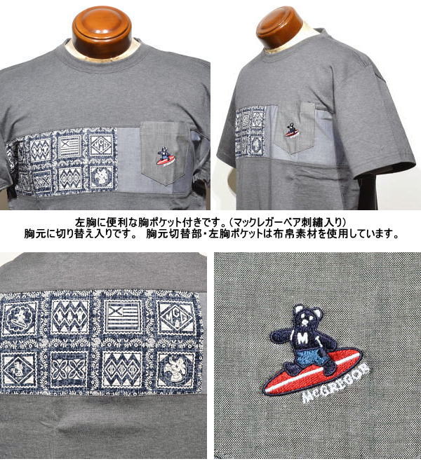| マクレガー メンズ Tシャツ 111725404 手洗い可 布帛素材部分使い クルーネックTシャツ McGREGOR |