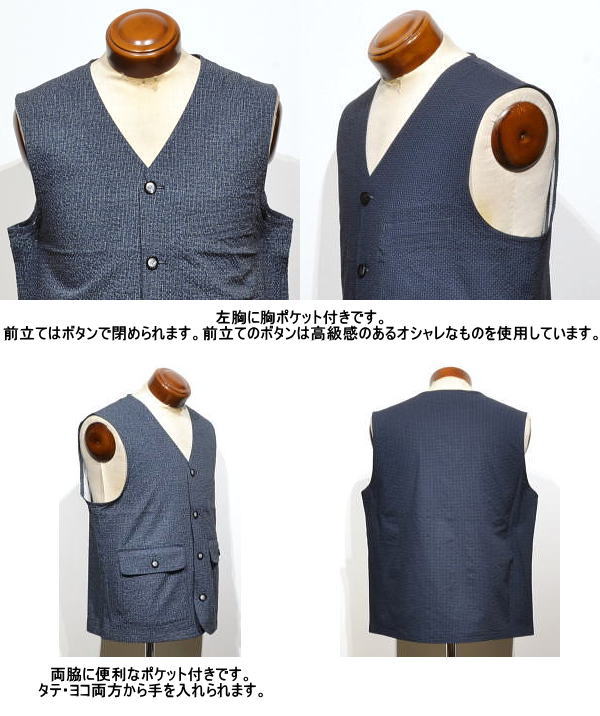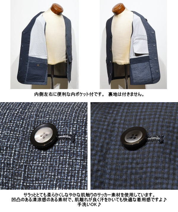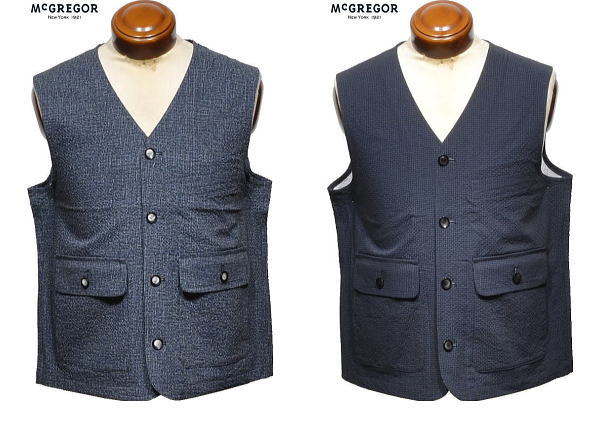 | マクレガー ベスト メンズ 111105101 夏もオススメ 手洗い可 サッカー素材使用 前開きベスト アウターベスト ジレ McGREGOR |