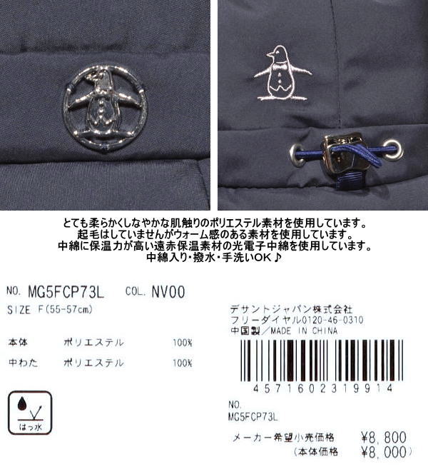 マンシングウェア ハット レディース MG5FCP73L 手洗い可 中綿入り 遠赤保温 サイズ調節可能 バケットハット 帽子 キャップ 2025年秋冬新作 |