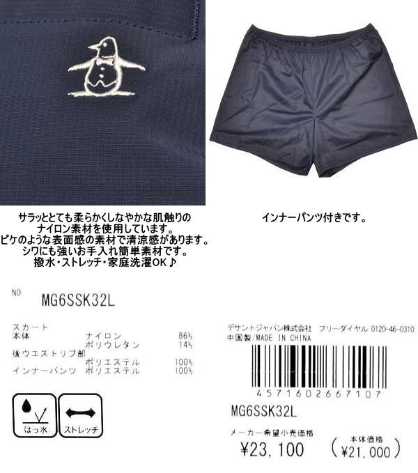 | マンシングウェア スカート レディース MG6SSK32L 家庭洗濯可 撥水 ストレッチ プリーツスカート 2026年春夏新作 |