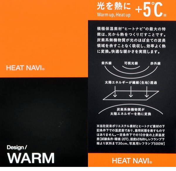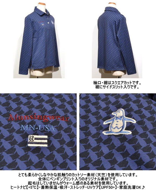 | 特 徴 | 天竺ペンギンプリント入り ヒートナビ(+5℃) 蓄熱保温 吸汗 ストレッチ UVカット(UPF50+) 家庭洗濯可 日本製 |