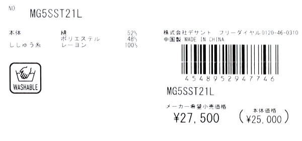 | 特 徴 | 12G天竺 手洗い可 |