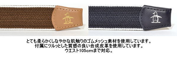 | 特 徴 | リバーシブル ゴムメッシュ素材使用 ウエスト105cmまで対応(長さ調節不可) 全長114cm(バックル含む) 35mm幅 |