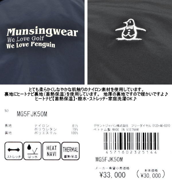 | マンシングウェア ブルゾン メンズ MG5FJK50M 家庭洗濯可 ヒートナビ 蓄熱保温 撥水 ウインドブレーカー ジャケット ジャンバー 2025年秋冬商品 |