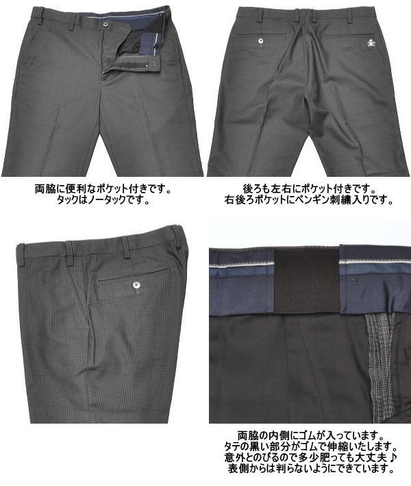 特 徴 | グレンチェック柄 ウエストフリー仕様 ストレッチ 家庭洗濯可 |