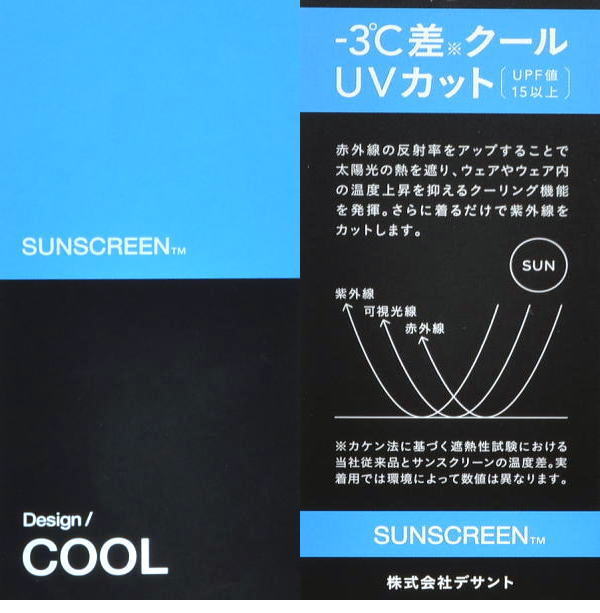 | 素 材 | 鹿の子ストライプ柄 サンスクリーン(クーリング効果) 遮熱 吸汗速乾 UVケア(UPF15) 家庭洗濯可 |