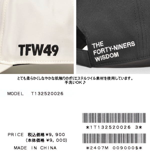 TFW49 キャップ メンズ T132520026 手洗い可 帽子 ベースボールキャップ ティエフダブリュフォーティーナイン |