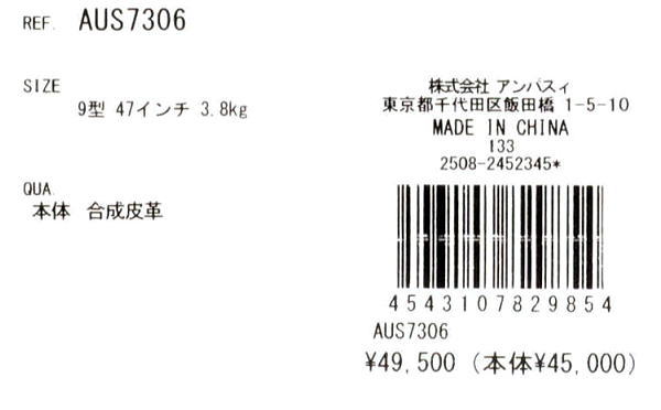 | 特 徴 | 合成皮革 9型 47インチ対応 5分割 重量:3.8kg |