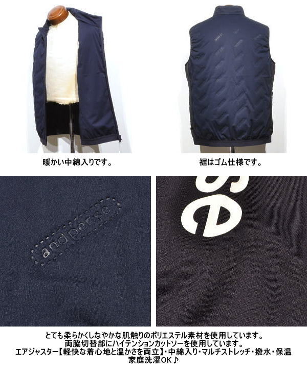 アンパスィ 中綿入りアウターベスト メンズ AMF1015G3 家庭洗濯可 撥水 保温 マルチストレッチ アウターベスト ベスト ジレ アンパシー |