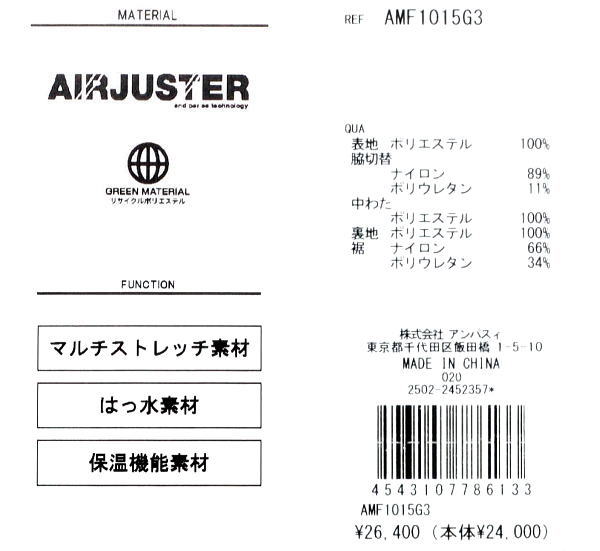 特 徴 | エアジャスター(軽快な着心地と温かさを両立) 中綿入り マルチストレッチ 撥水 保温 家庭洗濯可 |