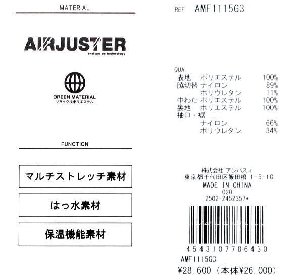 特 徴 | エアジャスター(軽快な着心地と温かさを両立) 中綿入り マルチストレッチ 撥水 保温 家庭洗濯可 |