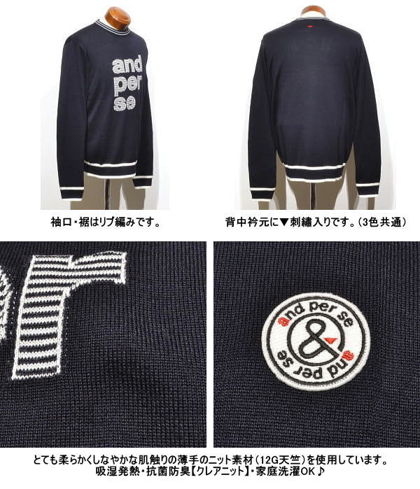 アンパスィ セーター メンズ AMF2345A7 家庭洗濯可 吸湿発熱 抗菌防臭 日本製 アンパシー クルーネックセーター ニット ウォッシャブルセーター |
