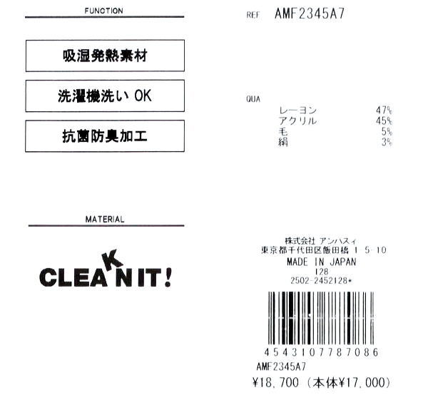 特 徴 | ニット素材(12G天竺織柄入り) クレアニット(抗菌防臭) 吸湿発熱 家庭洗濯可 日本製 |