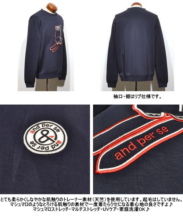 ![]() ![]() 【秋冬商品・春もオススメです。】 アンパシー andperse メンズ ゴルフウェア トレーナー スウェット スウェットシャツ AMF6215J3 (M/L/LL) アンパスィのマシュマロストレッチスウェットトレーナーです。 胸元のクマをモチーフにした刺しゅうが良い感じで、アンパシーらしい遊び心のあるオシャレなトレーナーです。 細かいところも丁寧に作りこまれていますので、『おっ、良い感じ♪』と思っていただけましたら超オススメです。 生地はとても柔らかくしなやかな肌触りのトレーナー素材(天竺)を使用しています。起毛はしていません。 マシュマロのようなとろける肌触りの素材で一度着たらクセになる着心地の良さですよ♪ 肌触りの良い素材で、かなりストレッチいたしますので着心地も抜群です。 秋から冬まで真冬以外がオススメ着用シーズンです。 春先もオススメです。 家庭洗濯できます。 ![]() ![]() ![]() ![]() ![]() |
