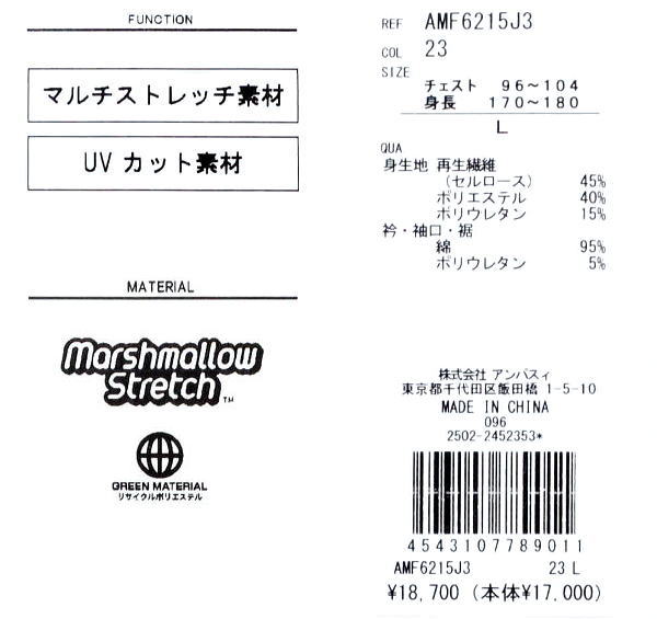 アンパスィ トレーナー メンズ AMF6215J3 マシュマロストレッチ マルチストレッチ アンパシー スウェットシャツ クルーネックトレーナー |