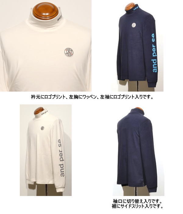 【秋冬商品】 アンパシー andperse メンズ ゴルフウェア 長袖ポロシャツ 長袖シャツ AMF9235V8 (M/L/LL/3L) アンパスィのマシュマロスムースハイネックシャツです。 衿元・左袖のプリント、左胸のワッペンがポイントで、アンパシーらしいデザインのモックネック長袖シャツです。 細かいところも丁寧に作りこまれていますので、『おっ、良い感じ♪』と思っていただけましたら超オススメですよ♪ 生地は柔らかくしなやかな肌触りのカットソー素材(天竺)を使用しています。起毛しています。 マシュマロのような滑らかな肌触りの素材でクセになる着心地の良さですよ♪ 吸湿発熱・UVカット素材ですので、快適な着用感が持続いたしますよ♪ 滑らかな肌触りで、マルチストレッチいたしますので着心地も抜群です。 秋から冬がオススメ着用シーズンです。 家庭洗濯できます。 ![]() ![]() ![]() ![]() |