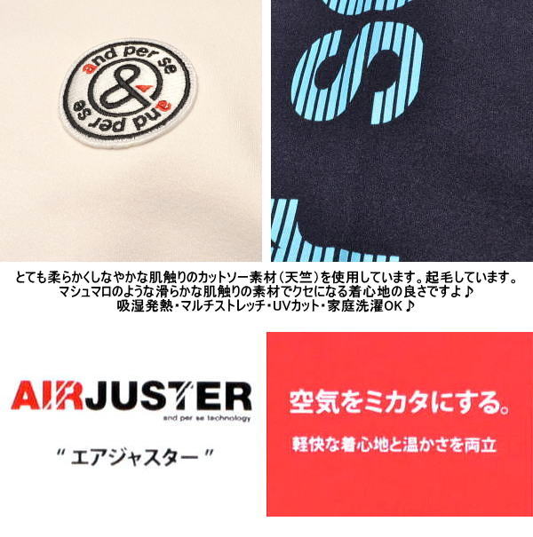 特 徴 | エアジャスター(軽快な着心地と温かさを両立) 天竺起毛 マルチストレッチ 吸湿発熱 UVケア 家庭洗濯可 |