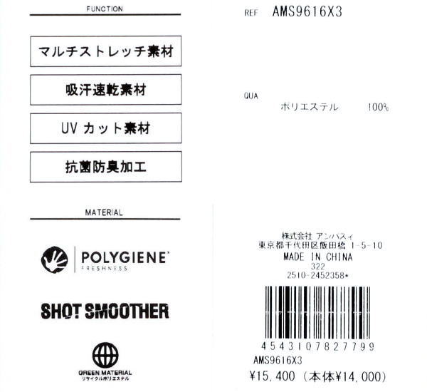 | 特 徴 | ショットスムーサー ハニカム天竺 マルチストレッチ 吸汗速乾 UVケア 抗菌防臭 家庭洗濯可 |