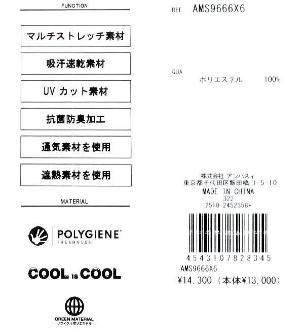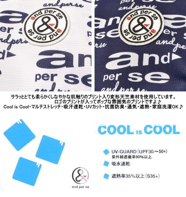 | 特 徴 | 変形天竺プリント Cool is Cool マルチストレッチ 吸汗速乾 UVケア 抗菌防臭 通気 遮熱 家庭洗濯可 |