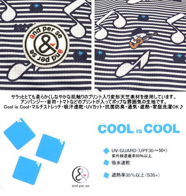 | 特 徴 | 変形天竺プリント Cool is Cool マルチストレッチ 吸汗速乾 UVケア 抗菌防臭 通気 遮熱 家庭洗濯可 |