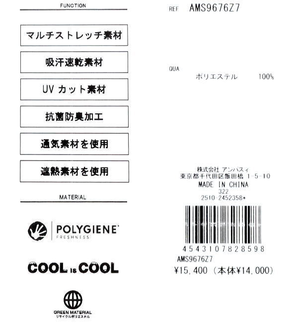 アンパスィ 半袖ポロシャツ メンズ AMS9676Z7 吸汗速乾 UVカット 遮熱 通気 抗菌防臭 アンパシー アンパシィ 半袖シャツ |